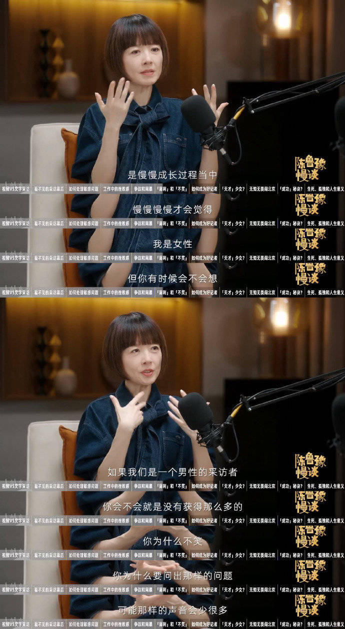 现在的她学会了跟自己和解。去年在B站开的新节目《陈鲁豫·慢谈》里,她不再追问嘉宾的痛处,反而会跟周迅一起窝在沙发上啃鸭脖,听李诞讲脱口秀背后的焦虑。有人问她怎么突然变“佛”了,她笑着说:“以前总觉得要抓住所有机会,现在发现人生不是马拉松,是逛公园,慢慢走才能看到花开。” 这种转变让她收获了更多路人缘。最近她在成都逛菜市场被网友偶遇,穿着帆布鞋蹲在路边挑橘子,被认出时还主动把刚买的草莓分给大家。有评论说得好:“比起精致的假人,大家更爱真实的活人。”或许这就是“松弛感”的真正魅力——不是刻意营造的岁月静好,而是历经千帆后的通透与坦然。